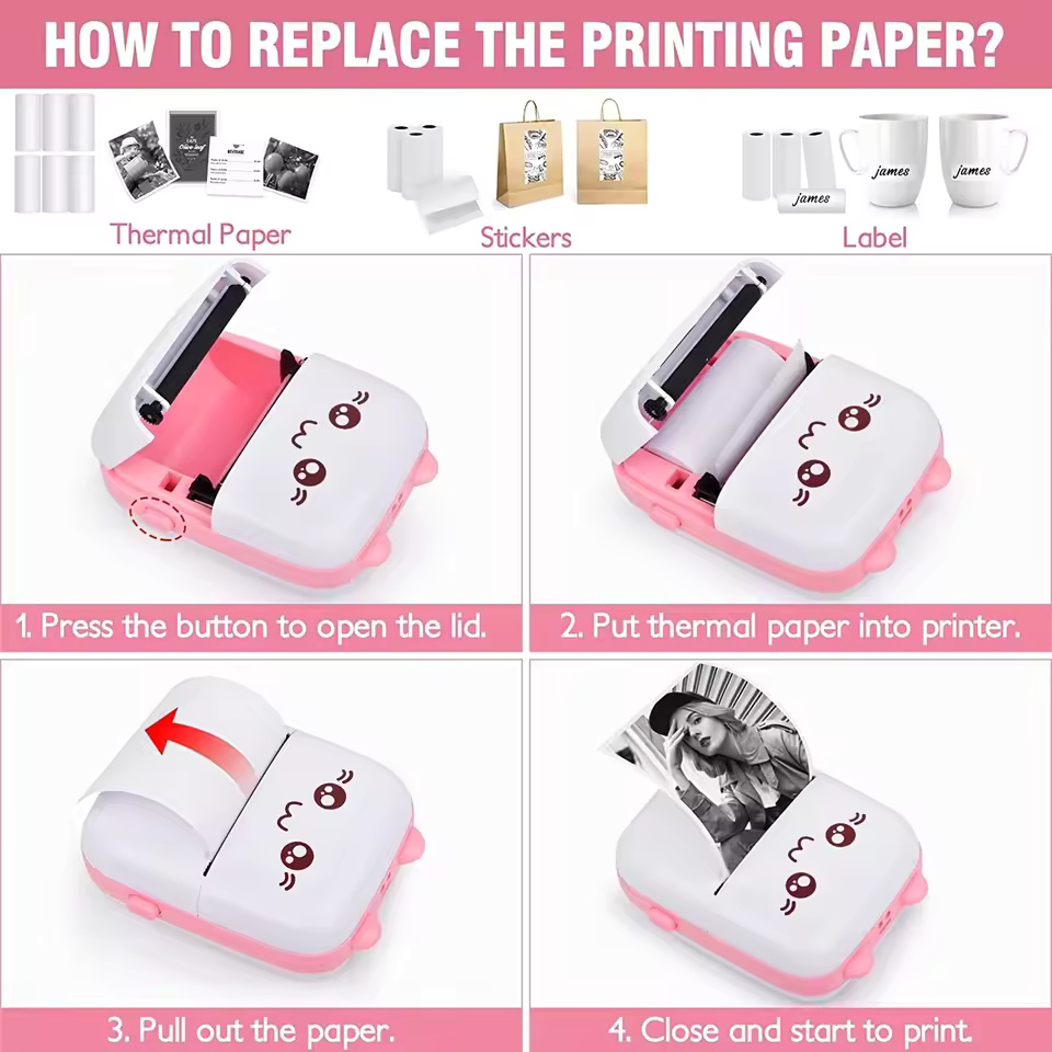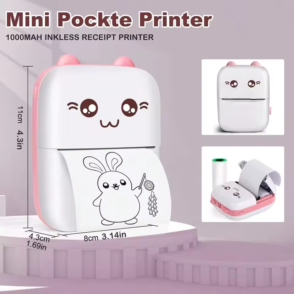 Mini HD Portable Bluetooth Thermal Printer – Inkless Pocket Printer for Notes, Labels & Students | Easy & Error-Free Printing